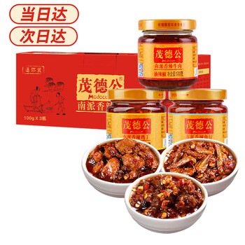 茂德公 辣椒酱香辣牛肉酱鱼仔酱鸡丁香辣酱下饭酱100g*3瓶旅行礼盒装