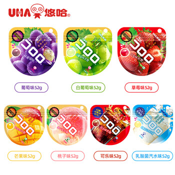 悠哈 酷露露果汁软糖 52g*2包 白葡萄味 qq糖 爆浆软糖 休闲零食糖果
