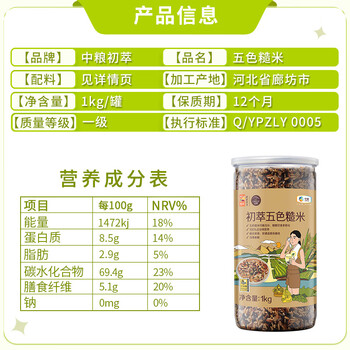 初萃 中粮全谷物五色糙米2斤(燕麦米 紫米 黑米 红米 糙米)粗粮主食