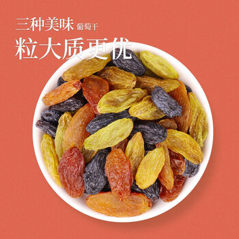 南疆巴朗 葡萄干吐鲁番大颗粒红绿黑香妃三色提子干218g/罐小包装