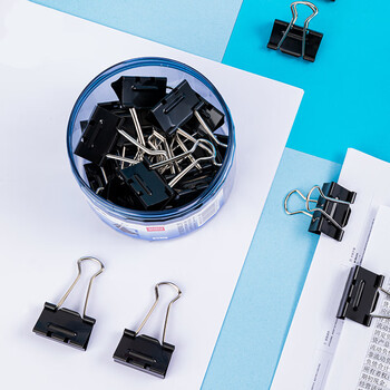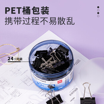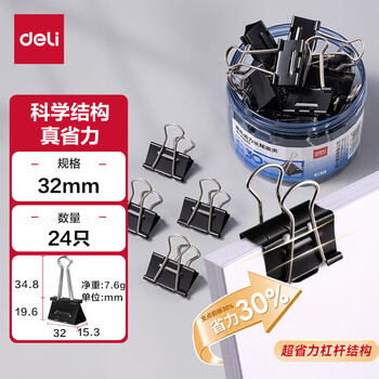 得力(deli)24只32mm省力黑色长尾夹票夹 3#中号金属燕尾夹票据文件夹子 办公用品 24只/筒 中号8563S