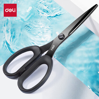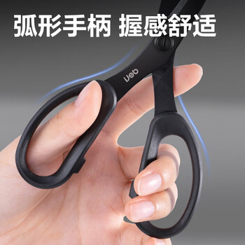 得力(deli)【超级爆款】175mm人机造型剪刀 黑刃防锈 家用生活剪子 学生剪纸刀 办公用品 黑77790