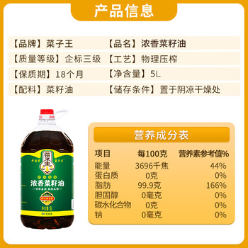 菜子王【保真菜籽油】浓香菜籽油5L 四川风味滴滴香浓 非转基因 食用油