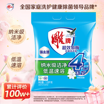 雕牌 超效加酶洗衣粉1.28kg 茉莉清香 强效去渍 添加活性去渍成分 深层去污 白衣洁白 彩衣鲜艳 保持柔软*1