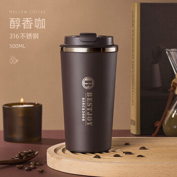 富光拾喜保温杯咖啡杯便携男女316不锈钢车载随手水杯500ml咖啡色