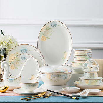 厨具---餐具---餐具套装---陶瓷餐具套装以辰梦幻花影60件