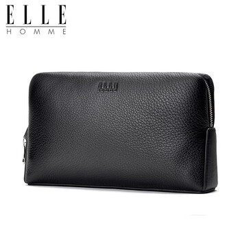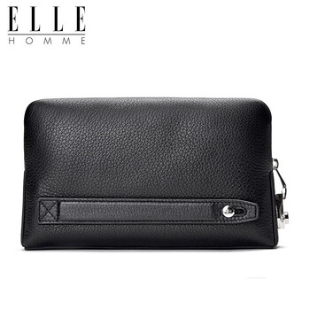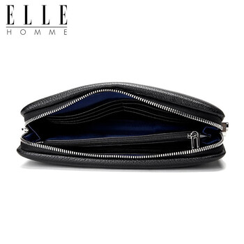 ELLE HOMME【专柜同款】男士手包 头层鹿皮商务手拿包时尚休闲大容量拉链手抓包夹包CZEB781204451黑色 生日礼物送男友
