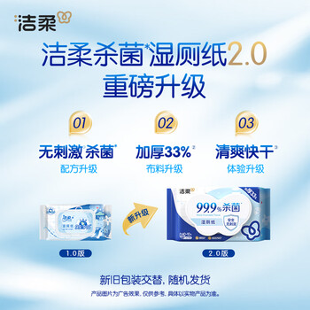 洁柔(C&S)湿厕纸(50片装)*1包,新老品交替发货,老品40抽 整箱20包