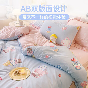 多喜爱家纺全棉床上用品三件套 学生宿舍单人纯棉被套床单套件1.2米床152*218cm