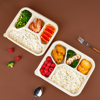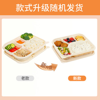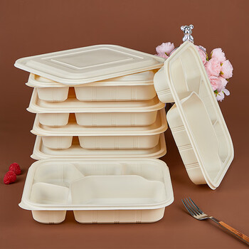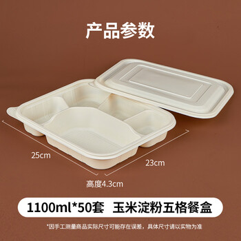 SHUANG YU一次性饭盒50套*1100ml玉米淀粉可降解五格分格餐盒环保打包盒