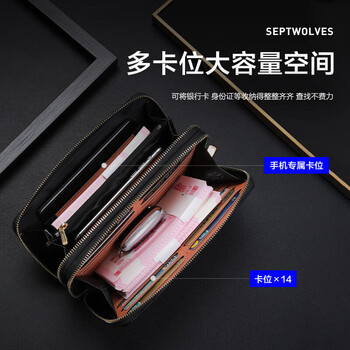 七匹狼钱包男士手拿包真牛皮卡包双拉链大容量生日礼物送男友老公