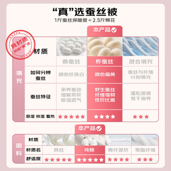 富安娜100%蚕丝被子纯棉面料春秋被芯四季被单人空调被约4.6斤203*229cm