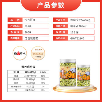 悦谷百味 熟南瓜籽360g*1罐