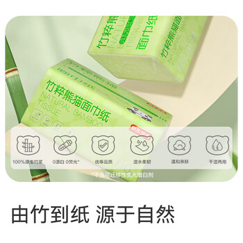 京东京造 竹粹本色抽纸3层110抽*24包“熊猫纸”竹浆无漂白纸巾餐巾纸整箱