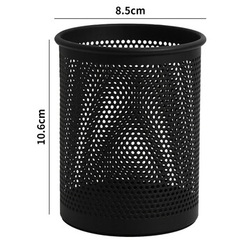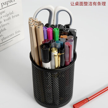西玛(SIMAA)【密集加厚】金属网纹圆形笔筒 简约创意桌面收纳盒 办公学习用品 黑色 单个装 8637