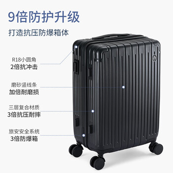 爱华仕行李箱拉杆箱24英寸旅行箱男大容量密码箱女托运出差皮箱子骑士黑