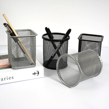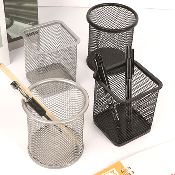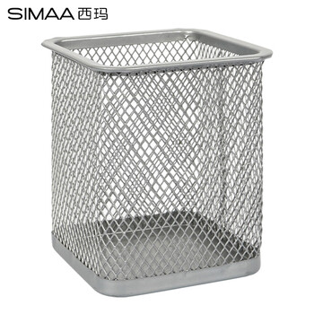 西玛(SIMAA)方形笔筒网纹防锈办公金属 创意简约桌面收纳 银色20245
