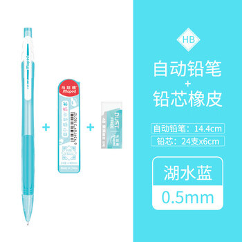 彩虹自动铅笔*1;HB铅芯*24支/管;4B橡皮*1【3件套/湖水蓝】