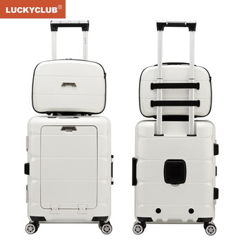 LUCKY CLUB行李箱男女铝框拉杆箱前开口大容量密码商务出差旅行子母箱24英寸