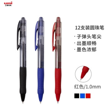 uni三菱 SN-100按动式圆珠笔 1.0mm圆珠笔 学生用笔 办公文具签字笔 红色 12支装