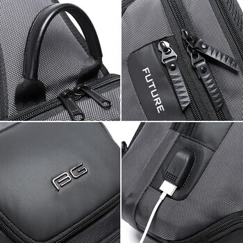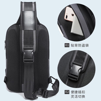 班歌胸包男士斜挎包时尚单肩包多功能防泼水小背包大容量iPad包7086灰