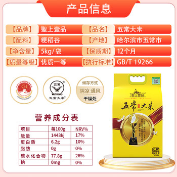 聖上壹品有机五常大米10斤 金奖系列 东北大米 真空包装 当季新米