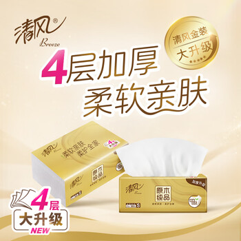 清风抽纸4层*90抽24包实惠装原木纯品无香餐巾纸卫生纸 包装随机