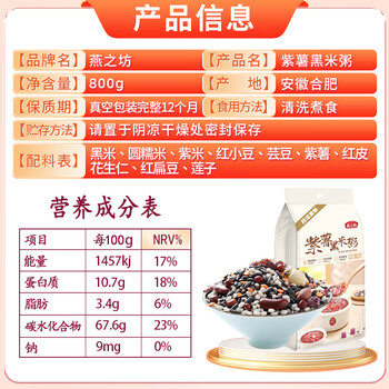 燕之坊 紫薯黑米粥腊八粥粗粮粥米养生粥粥米原料营养早餐粥1.6斤