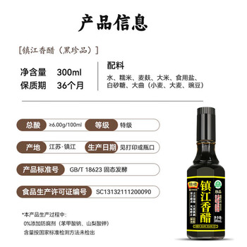 恒顺镇江香醋 珍品 特级 6度 300ml 天然晒制 不添加防腐剂