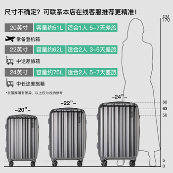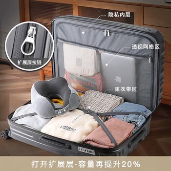 莎米特大容量行李箱20英寸可扩容拉杆箱万向轮旅行箱PC154T4A 深灰