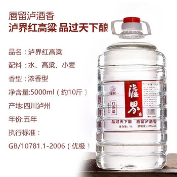 泸界粮食酒 泸州红高粱60度浓香型桶装高度纯粮食白酒5L泡药酒口粮酒
