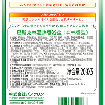 巴斯克林温热香浴盐 旅行装 森林香20g*5包日本进口足浴泡浴盐