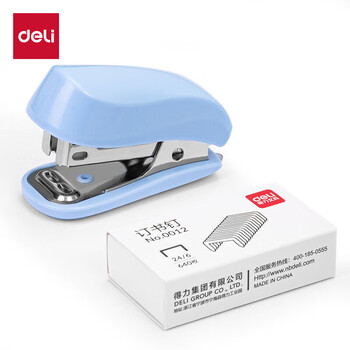 得力(deli)(deli)12#迷你便携订书机套装(订书机+订书针) 试卷装订 学习用品 蓝色0255