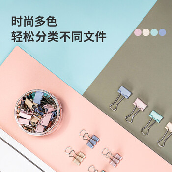 得力(deli)8555A时尚彩色金属长尾夹19mm票夹学生办公用票据夹燕尾夹文件夹 混色装 40只/桶 1桶装