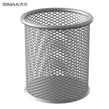 西玛(SIMAA)圆形笔筒网纹防锈办公金属 创意简约桌面收纳 银色20244