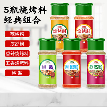 香辣烧烤料39g,五香烧烤料39g, 辣椒粉30g,孜然粉30g,椒盐粉39g
