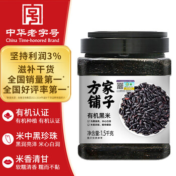 方家铺子中华老字号 有机黑米3斤/罐 黑香米无染色五谷杂粮 东北粗粮