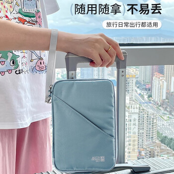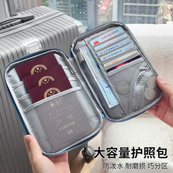 欣沁护照包多功能证件袋护照夹证件收纳包卡包票夹PU膜涂层大号蓝灰色