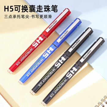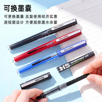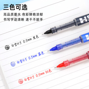 白雪(snowhite)速干中性笔黑色V5升级版可换墨囊直液式走珠笔 0.5mm签字笔 H5 黑色12支