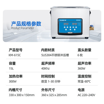 科盟超声波清洗机工业大功率实验室超声机商用清洗仪器大容量KM-615C