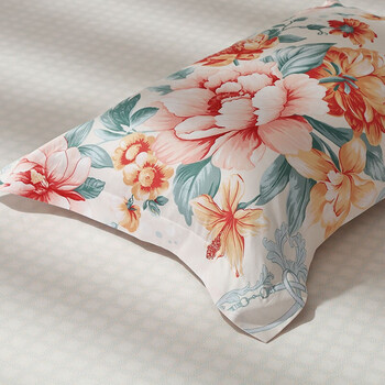 富安娜 纯棉床上四件套 60支长绒棉印花套件 全棉床单被套203*229cm