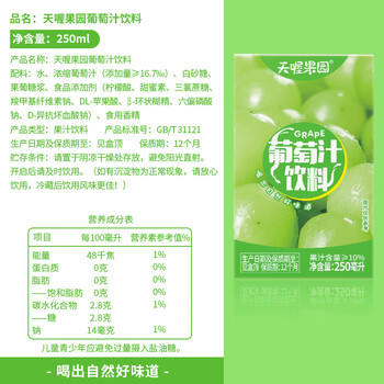 天喔葡萄汁250ml*16整箱装