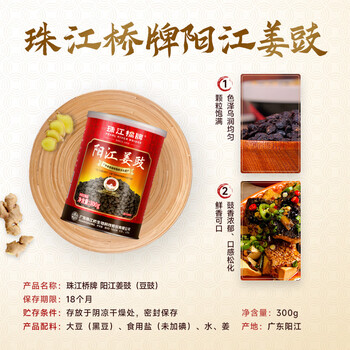 珠江桥牌阳江姜豉豆豉300g 0防腐剂0着色剂广东特产阳江豆豉 中华老字号