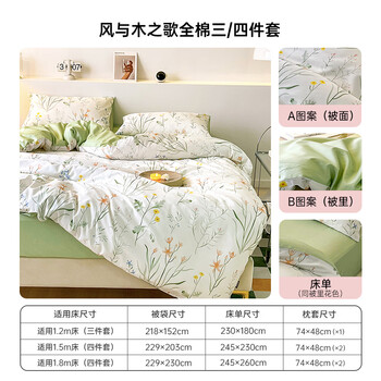 多喜爱家纺纯棉床上四件套 全棉双人床上用品被套床单套件1.5米床203*229cm