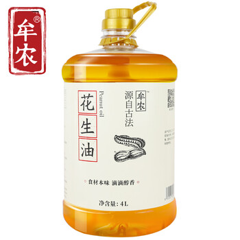 牟农【保真花生油】 物理压榨 花生油4L 压榨一级 烟台恒邦出品