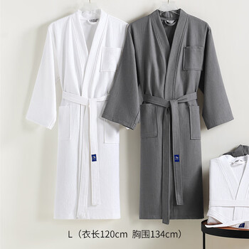竹一百浴袍 纯棉吸水浴衣简约家居汗蒸服华夫格男女睡袍 白色 L码
