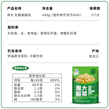 黑大 东北酸菜 乳酸菌发酵酸菜丝400g 酸白菜 0化学防腐剂