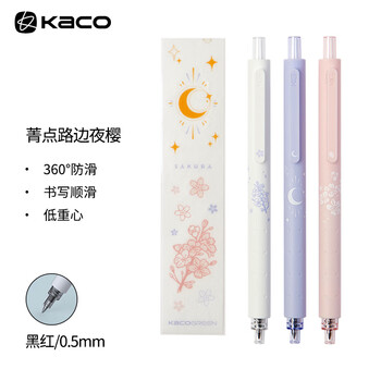 【开学必备】KACO文采按动笔 中性笔手账做标记笔 学生用水笔签字笔 夜樱 3支装(05黑芯*2+05粉芯*1+贴纸*1)