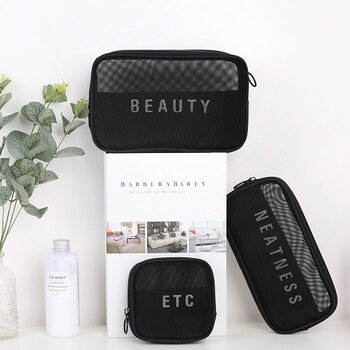 欣沁 旅行网状透气收纳包袋手拿化妆包洗漱包 中号黑色