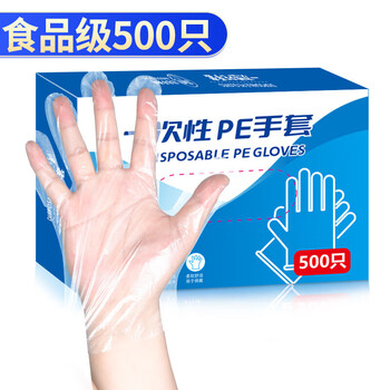 SHUANG YU一次性手套500只食品级手套防漏PE卫生手套加厚塑料透明手套
